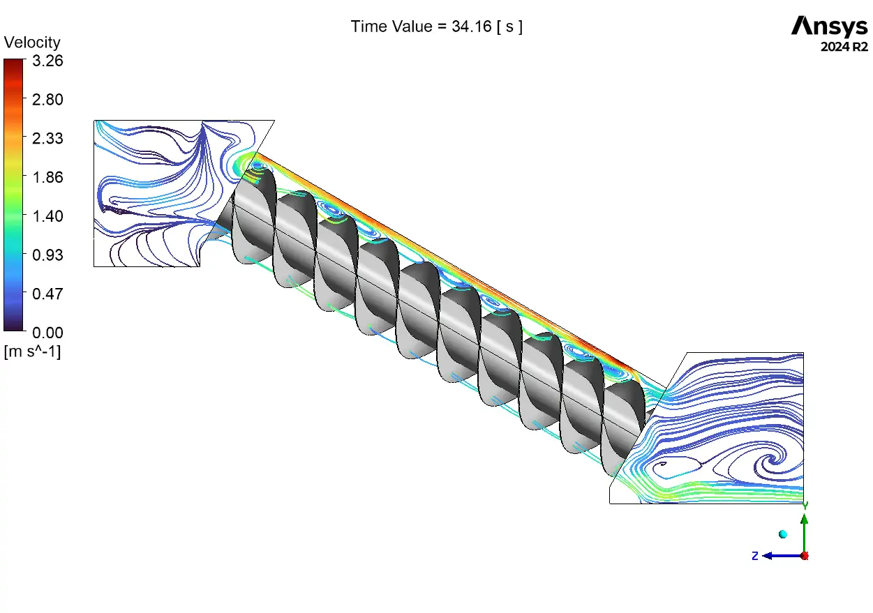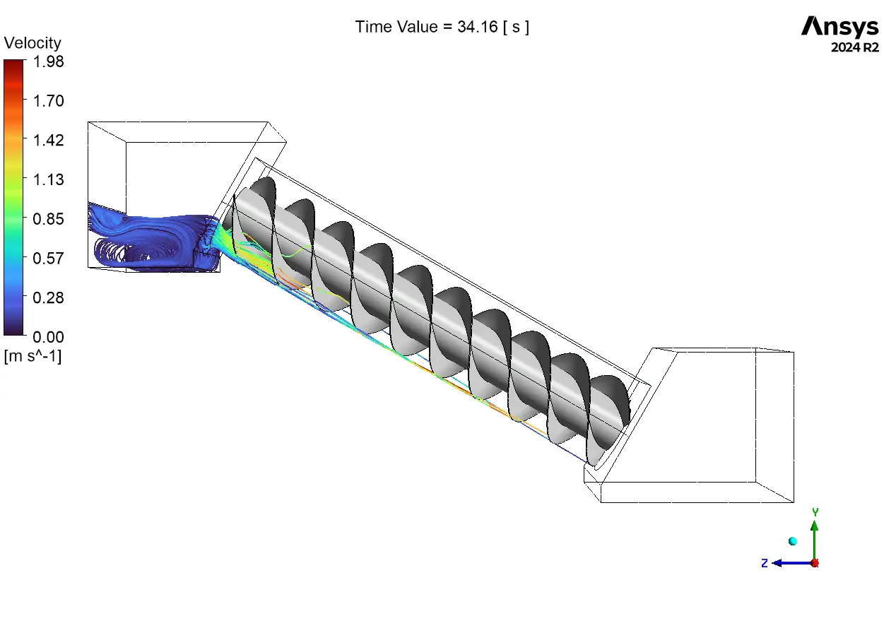 An Archimedes Screw Turbine CFD simulation is the key to designing efficient green energy systems for rivers and canals. Unlike high-speed turbines, the Archimedes screw works slowly and gently. It uses the weight of the water to push the blades and turn the shaft. An Archimedes Screw Turbine Fluent analysis allows engineers to see exactly how water flows through the screw buckets. This is difficult because the screw is always moving.
