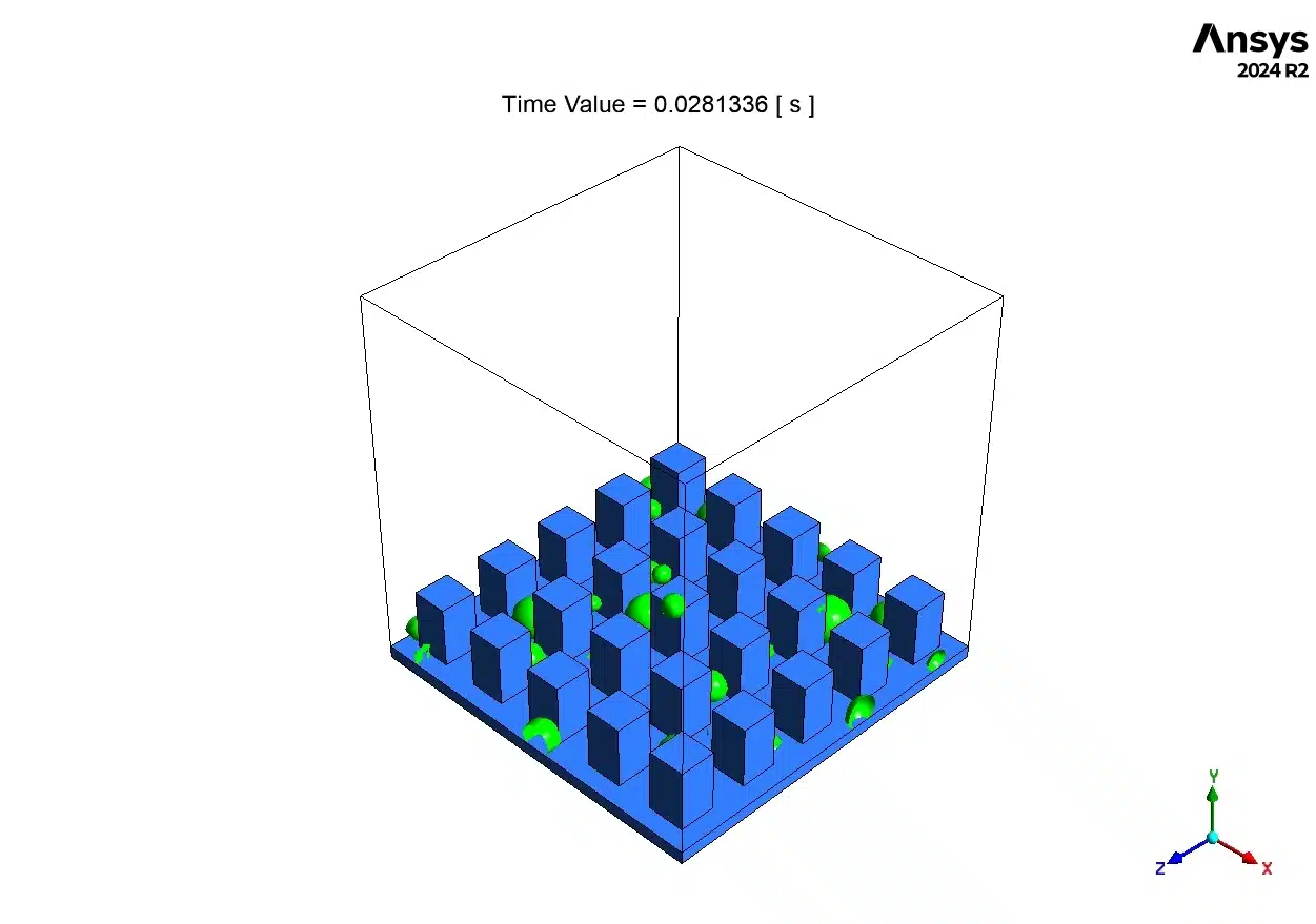 This is the ultimate goal of the Condensation on Microstructured Surface fluent study. Because the droplets jump away, the metal surface cleans itself instantly. The heat exchanger never gets covered in a thick water blanket, keeping it running at 100% efficiency.