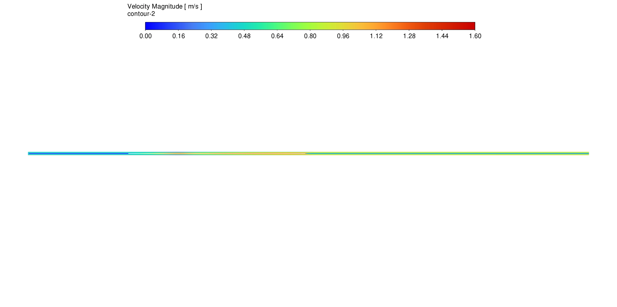 Now that we have confirmed that the heat is being removed, we will inspect the cooling system to see how it works so well. The velocity contour in Figure 3 shows us the cooling system in action. The water flows through the channels between the hot fuel rods. As it flows, it speeds up in the narrow gaps, reaching a top speed of 1.60 m/s.