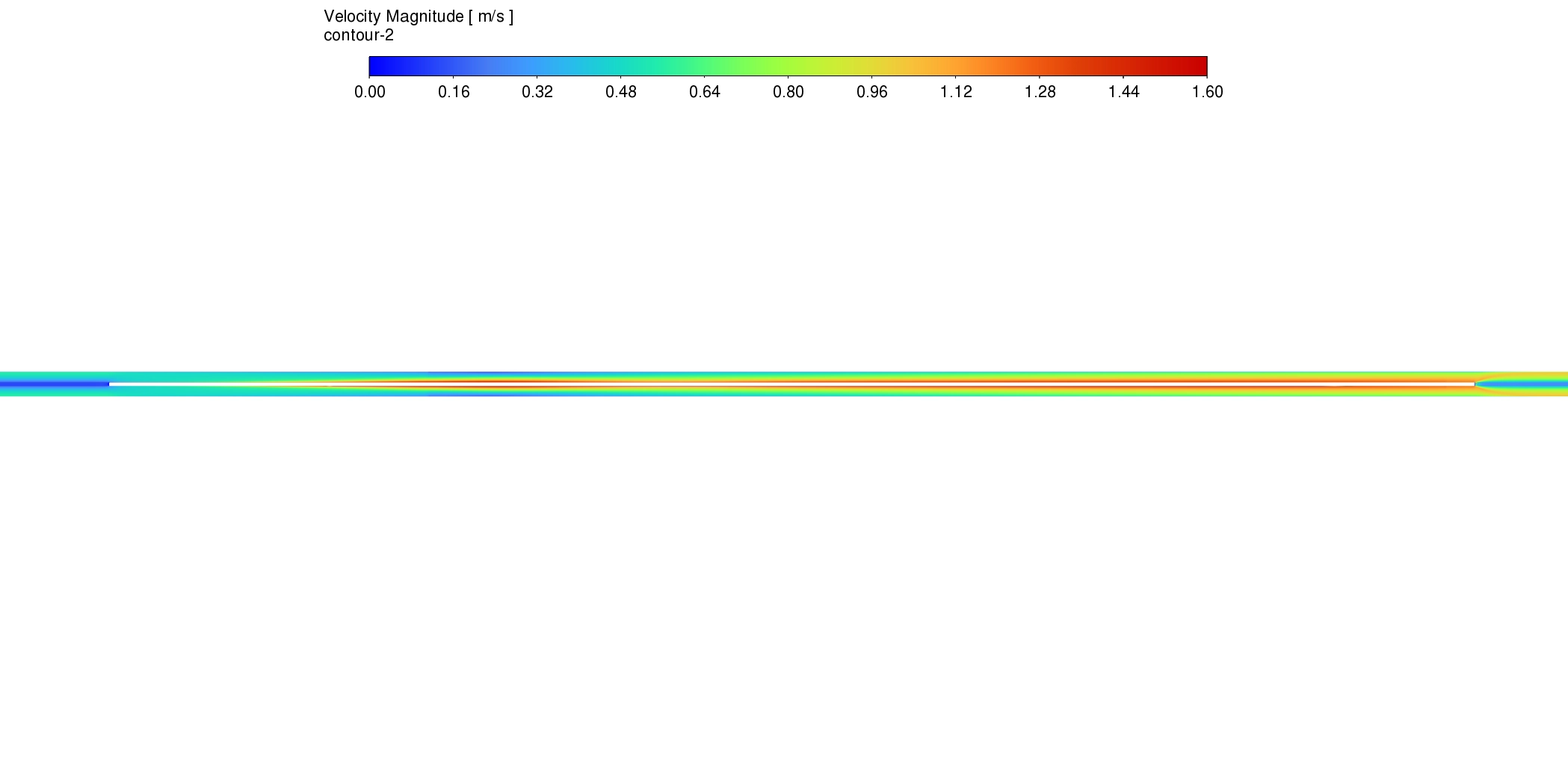 Figure 3: The velocity magnitude contour from the Fluent simulation. It shows the speed of the cooling water as it flows through the channels between the fuel rods, from 0.00 m/s to 1.60 m/s.