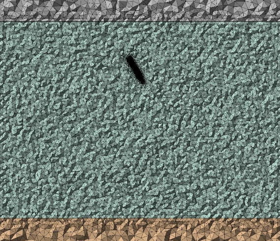 For this specific CFD – Oblique Water Entry Supercavitation case, the domain setup is critical. We built a large cylindrical control volume to prevent shockwaves from reflecting off the outer walls and disturbing the results. The mesh generation was handled with extreme care, resulting in 2.7 million cells (Figure 2). A very high density of cells was placed at the air-water interface. This is mandatory because the ANSYS Fluent solver needs to resolve the thin skin of the supercavity.